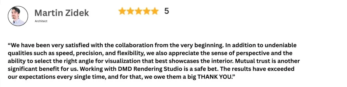 "When I first saw the renderings, I was really happy with how well they captured the design. They looked polished, realistic, and exactly as I envisioned."
